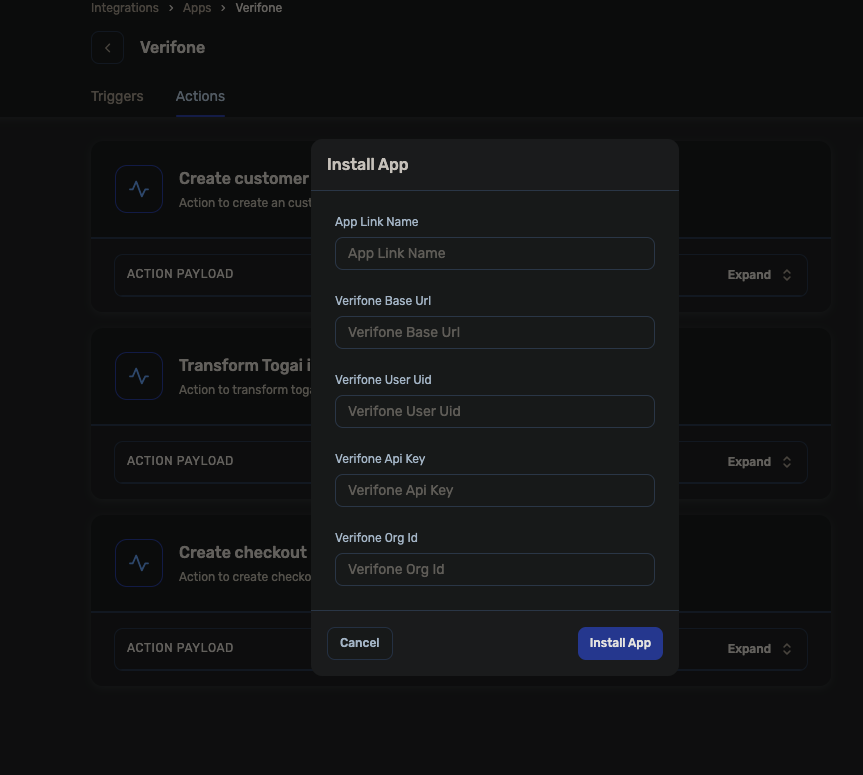 - Togai then creates a corresponding payment request on Verifone using the setting