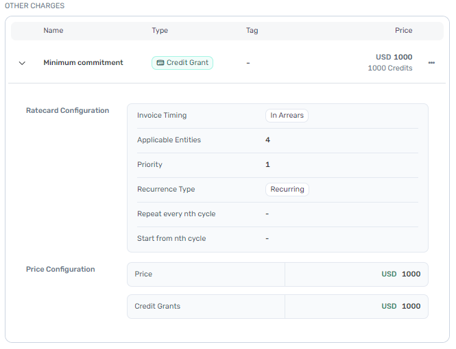 - Minimum commitments for individual line items - You can create a credit grant with a purchase price associated for the minimum commitment amount and associate them to specific line items or group of items in your invoice to model high configurability in your minimum commitments.